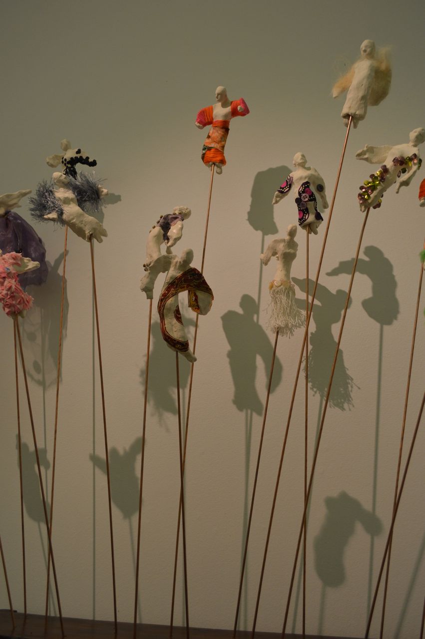 In The Shadows is a touring installation exhibition of many small works including sculptures, ceramics, mixed media, bones and paintings exploring themes of pain, loss, mourning, anger, transformation particularly after sexual abuse. In the Shadows is my response to work and research with victims of sexual assault and family violence: The women, men and children with whom I work all bear scars of their abuse. Feelings can be buried under addictions, mental illness, loneliness and low self-esteem.