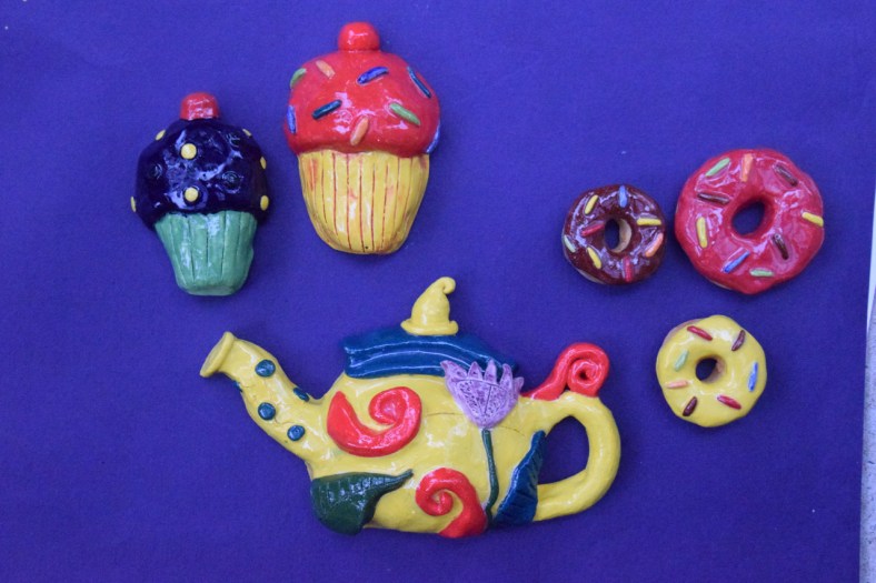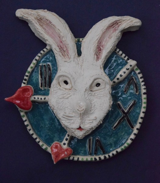 Here are some of Nat’s ceramic pieces which she created at home for our group works, Alice in Wonderland, two clay and mosaic artworks that are now installed at SECASA, Seaford.
