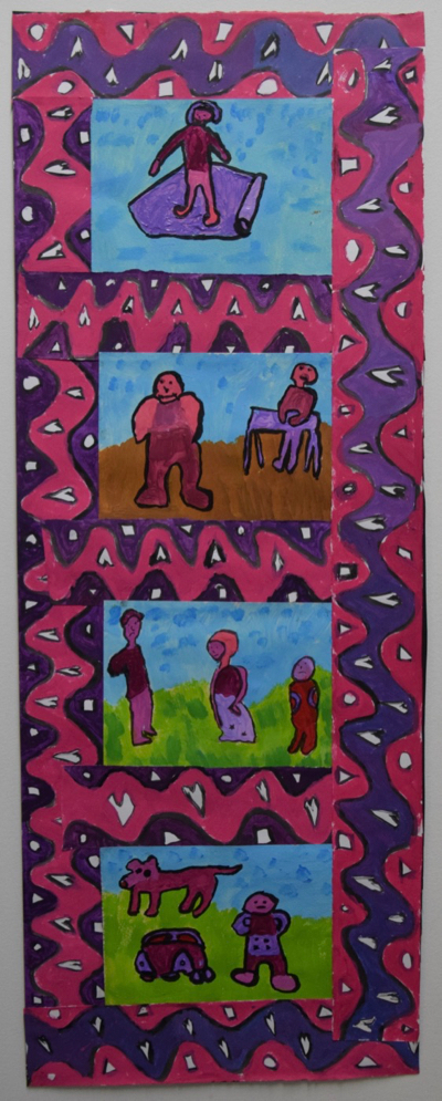 In our groups the SECASA counsellor is an active participant. Here is her colour palette – and her border for a larger painting