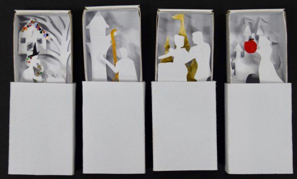 I didn’t want them to lose momentum while I was away so I gave them each a handful of matchboxes with an invitation to create mini-artworks over the break. The results were amazing, joyful, thoughtful, surprising and delightful. These are just some.