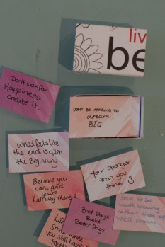Many of these artworks involve both the inside and the outside of the box … I can’t show you them all properly here, but you open some to find the most delightful surprise – a bunch of roses, affirmation cards – words of hope and joy to the viewer, a fairy tale, a little bird in the bird house, an underwater scene. Totally creative. Totally wonderful. Surprises rather than secrets.