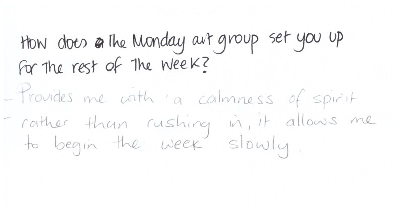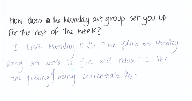 - Being in the art group sets them up for a good day and week. The art group is very much a highlight of participants week.