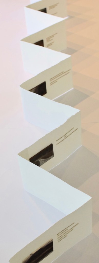 I thoroughly enjoyed many days and nights choosing the text and arranging the pages during my recent residency in Tasmania. I was grateful for a large room in which to work, as the book stretches out to quite a few metres, and there were pages spread everywhere. At times though, it was a struggle to manage the paper of the text which warped and stretched when it was wet, and to keep track of tiny cut out words – but I have learnt to accept these things.
