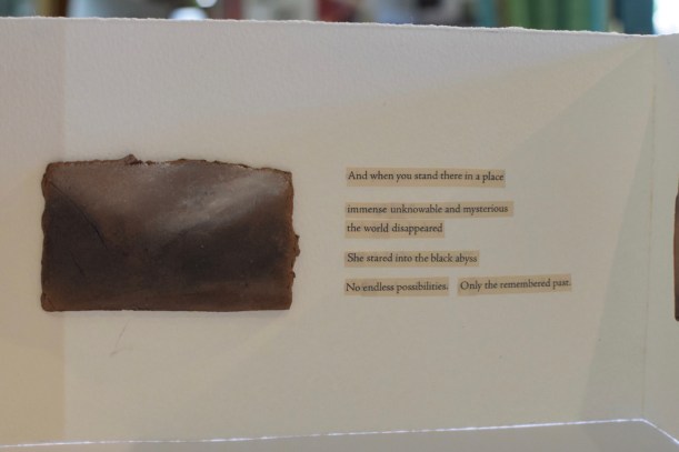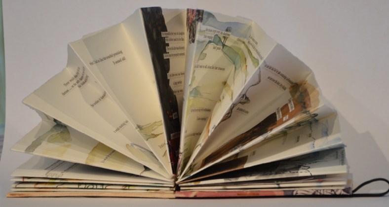My first, a concertina book called LOST and Loving, is an evocation of my mother’s growing confusion, merging with her grief for the loss of my father, her husband. Randomly skipping between one idea, one thought, and another seemingly unconnected one, the text and images captured and captivated my mother. She recognised herself and her experiences “Yes! That’s me!”