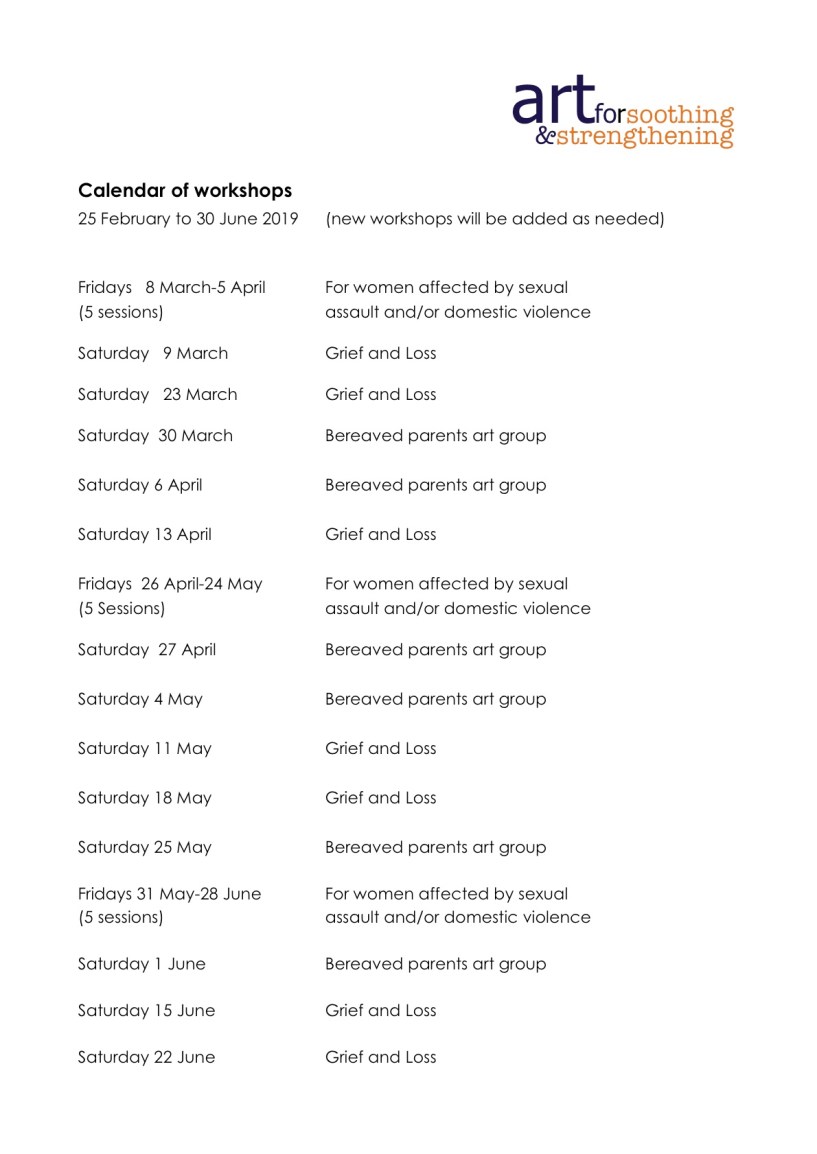 Details about each workshops/group, and the cost is available on my website www.anneriggs.com. Or email for a flyer.