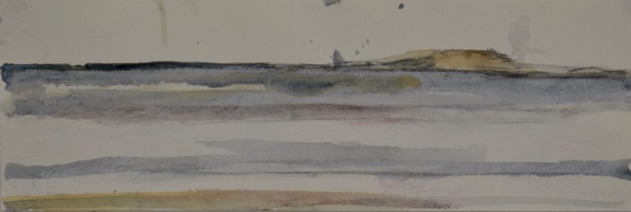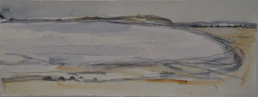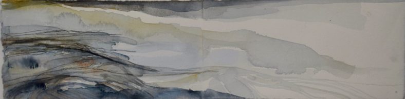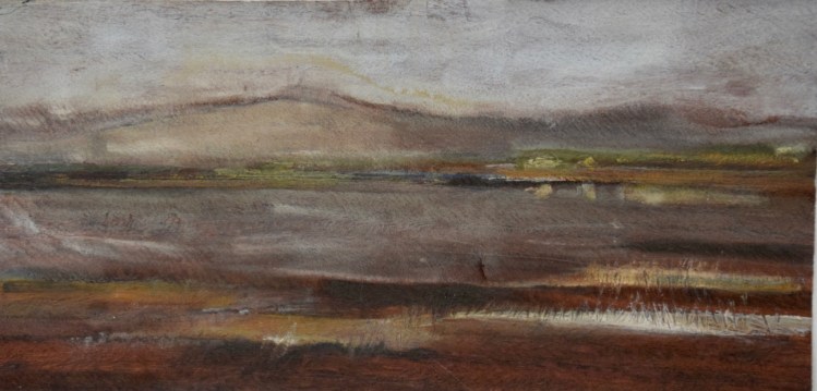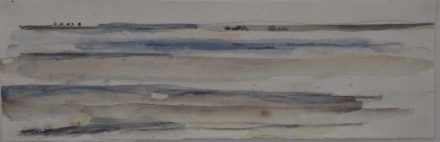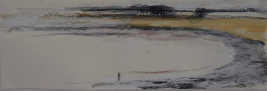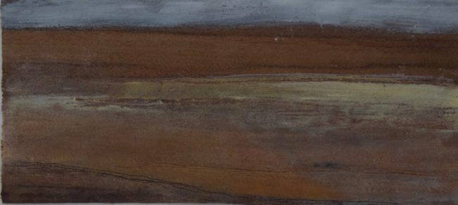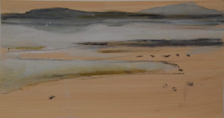 charcoal and watercolour on timber veneer 14 x 28 cm approx