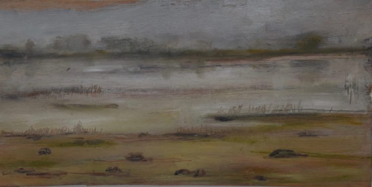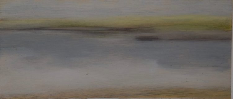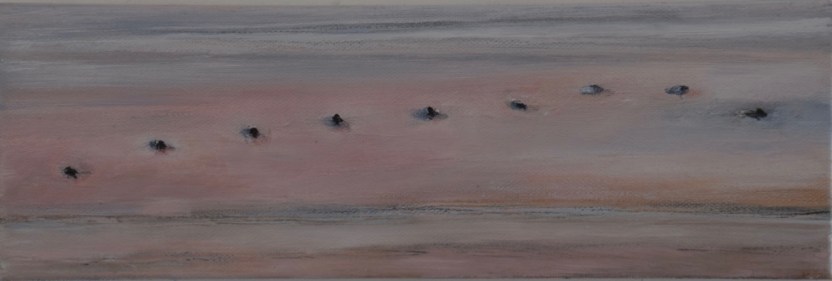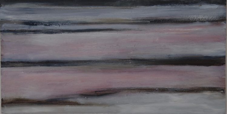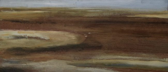 oil and charcoal on timber veneer 14 x 28 cm approx
