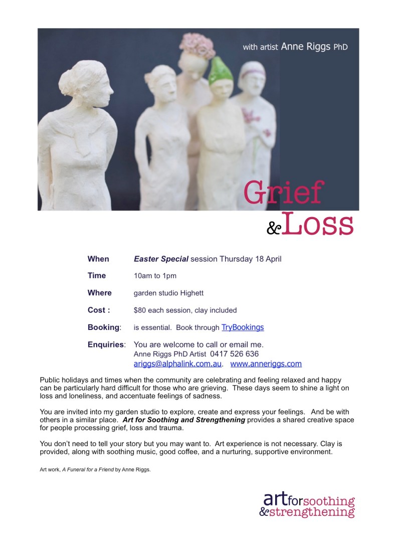 I am running a special ART for soothing and strengthening workshop just for you. Come to the studio for a relaxing morning. Settle into for a creative few hours with others who understand how you might be feeling in the lead up to Easter and be nurtured with art, conversation, coffee, morning tea and nature.