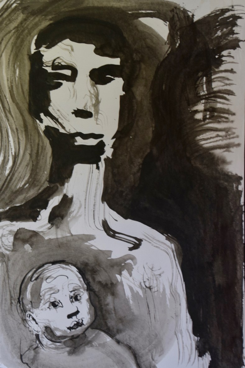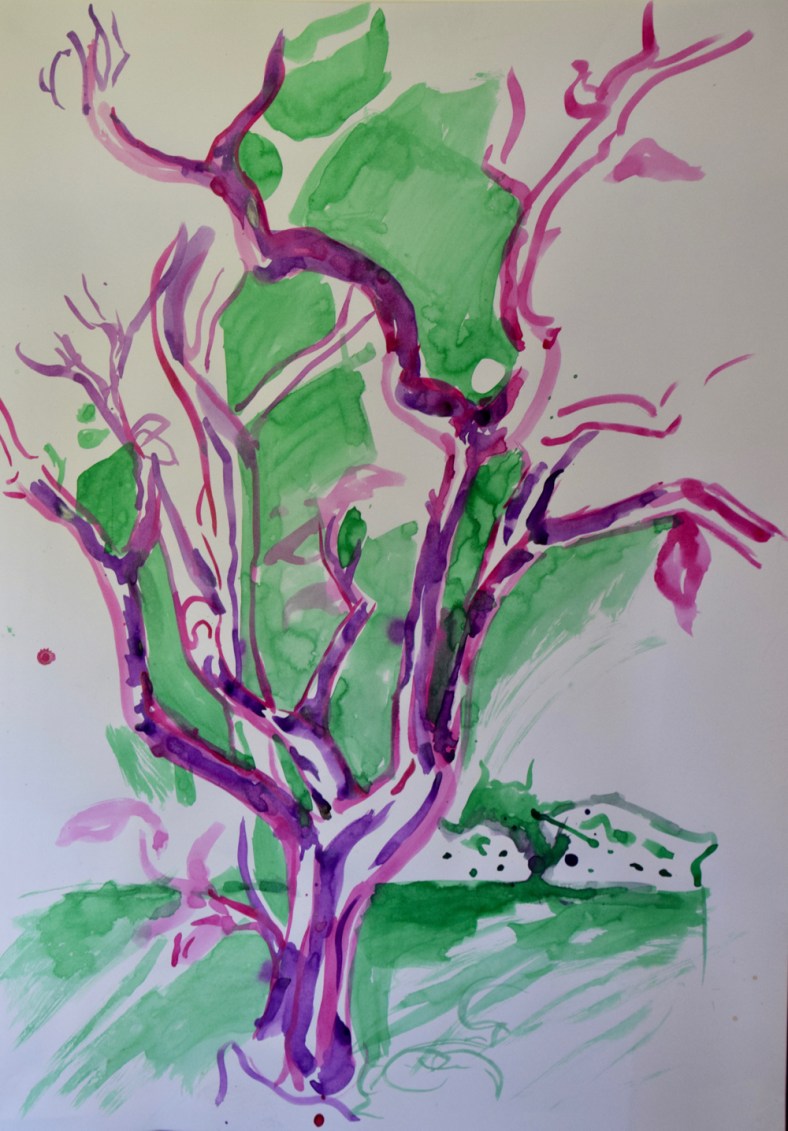 This striking ink drawing was created after the maker, Justine, was inspired by the work of artist Kathe Kollwitz. This participant in keen to try out all sorts of materials and ways of creating. I love her openness to trying new things, and her boldness with line, and her approach. She comes to the group to relax.