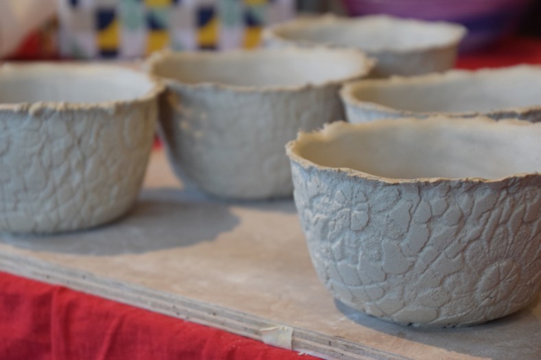 We choose hand-building clays, as we don’t work on the wheel. The raku and grittier clays are great for large works, and sculpture. They are also useful for beginners as they hold their shape easily. The smoother and more elastic clays can be a bit more of a challenge, but their lovely texture and ability to accept texture and mark-making is worth taking up that challenge!