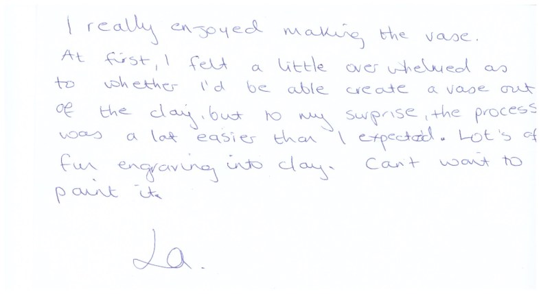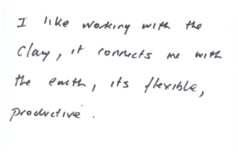 Women in my art groups at SECASA and in the studio love getting their hands into, and trying out different clays. White earthenware, raku, terracotta, stoneware and a beautifully delightful clay called Toast! Each clay has a unique structure and feel, some are smooth and soft, whilst others are robust and gritty. Some fire pure white, others terracotta and some even black. We paint, and glaze too. It is a totally wonderful material for so many reasons …. not least because it is of the earth and has qualities that feel natural and soothing.