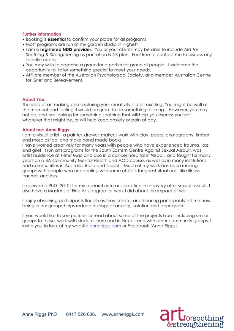 Download the attached flyer to get all the details, including booking information about what’s available in September. I welcome your enquiries and working with you to develop a program that will meet your news.