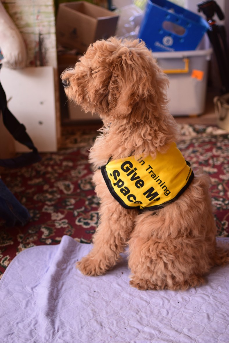 Over the years I have witnessed how assistance dogs benefit their owners who have complex PTSD. This little fellow joins us each week as he is learning to be an assistance dog; he helps his owner feel comfortable and secure. In a few short months he has gone from being an exuberant puppy to being a trusted companion. I believe that after many many years of study and advocating, these ways of assisting recovery and good mental and physical health, such as art, music, animals, are finally being recognised for the immense value they have.