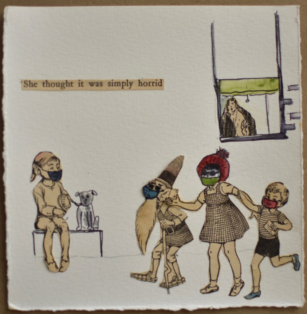 These are leaves which will together be placed into a box. These are random pages; each telling a short tale, reflecting a feeling for the day, or making an observation. I created many of them in 2020 as part of my Artwork a Day project, and I note as I look at them now, some of them reflect the inklings of alone-ness I sometimes felt towards the end of our long Melbourne lockdown.