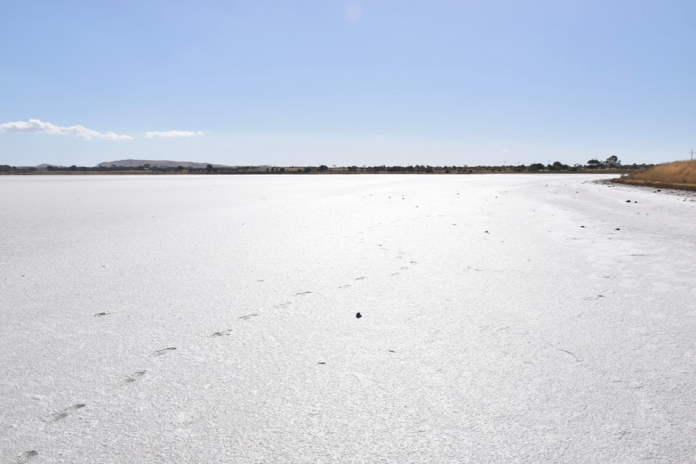 In Victoria, the state where I live, there are hundreds of lakes. Lake Corangamite is the largest, as well as being the largest permanent salt lake in Australia. Yet it is strangely difficult to access. Surrounded by farmland, and fenced off, it is, most importantly a RAMSAR site. A protected wetland. It is quite magnificent, and so worth getting lost to find. Lake Beeac is not far from Lake Corangamite, it is also a02 RAMSAR site and when I visited in January 2022, the layer of salt stretched as far as the eye can see. Blindingly bright. Exhilarating in its wondrousness.
