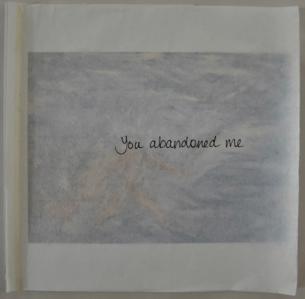 Mary Louise’s heartfelt book discussed in the journal article After The Rupture, repurposes a poem and artworks she originally created to describe the pain and consequences of multiple episodes of abuse. Her poem, I am Anonymous, appears as fragments; words are placed over digital images of some of the many, many paintings and drawings she created to work through her physical and emotional pain, her grief, sense of shame and powerlessness. Now these words and images speak to her experiences of not being heard, of feeling inconsequential, of being left to deal with her trauma on her own After the Rupture.