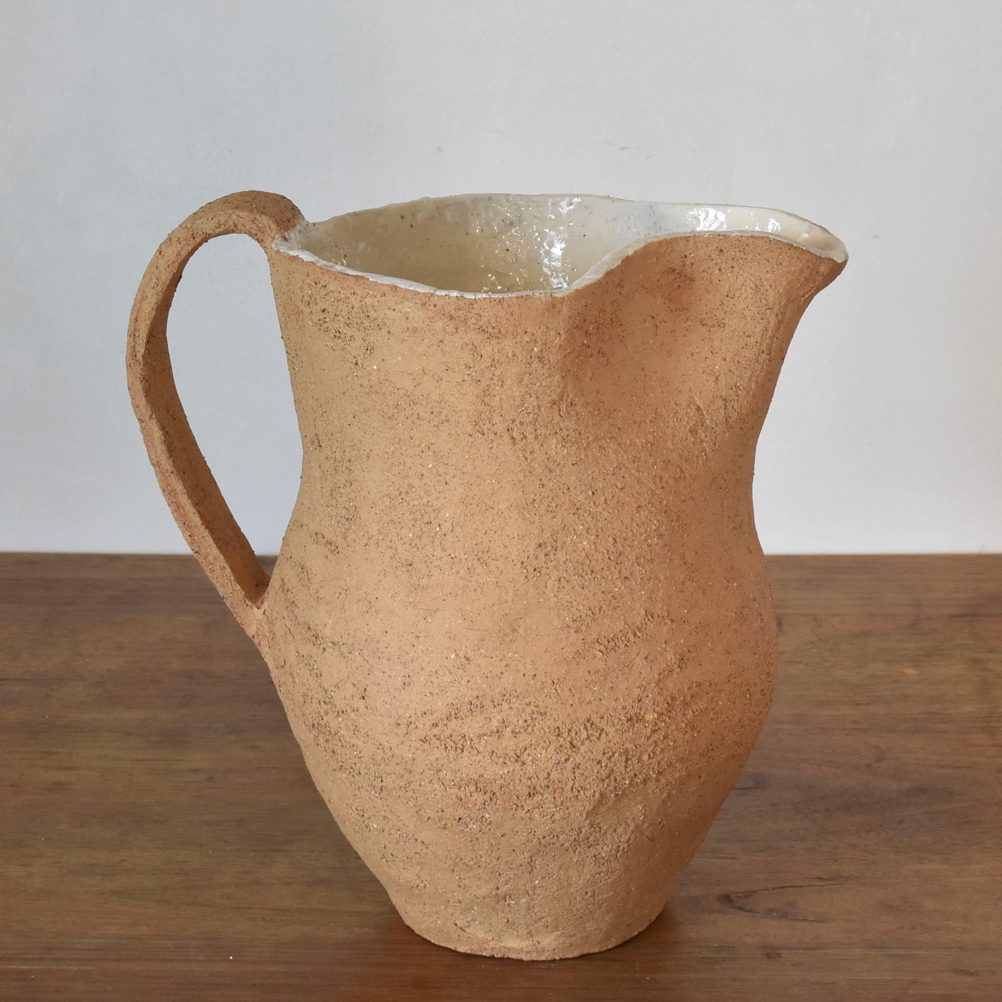 This little jug, approx.210 mm high is handcrafted from BRT clay. Clear glazed inside, with a white glazed rim. Beautiful with dried flowers, or as a water jug