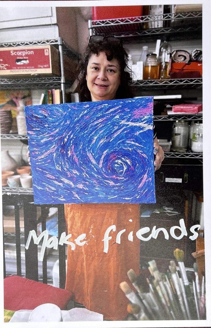Although I am not an art therapist, I am an artist with a lifetime of practice and research working in the field of arts+health. During COVID, my studio business Art for Soothing+Strengthening was considered an essential service as it provided (and continues to provide) life affirming creative practice to people who have complex trauma, can be extremely unwell and who have other mental health and neurological issues.