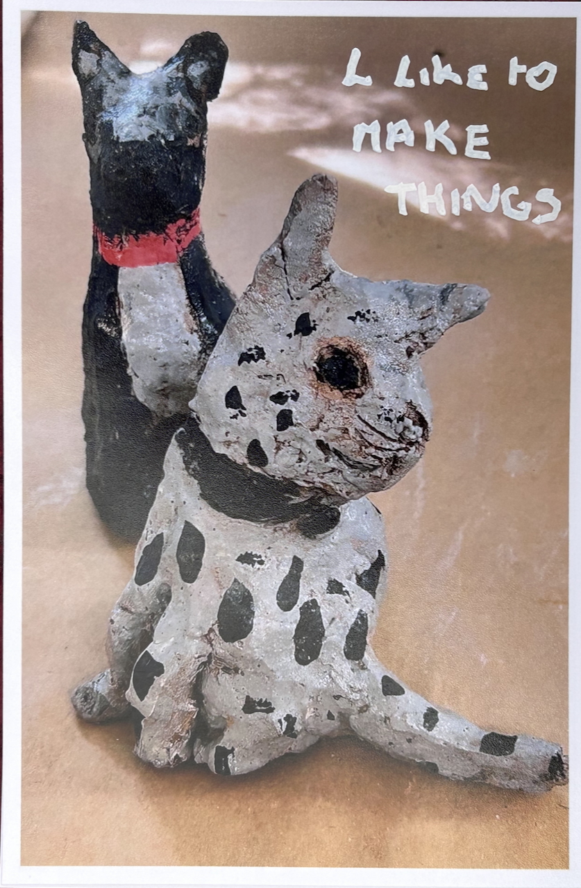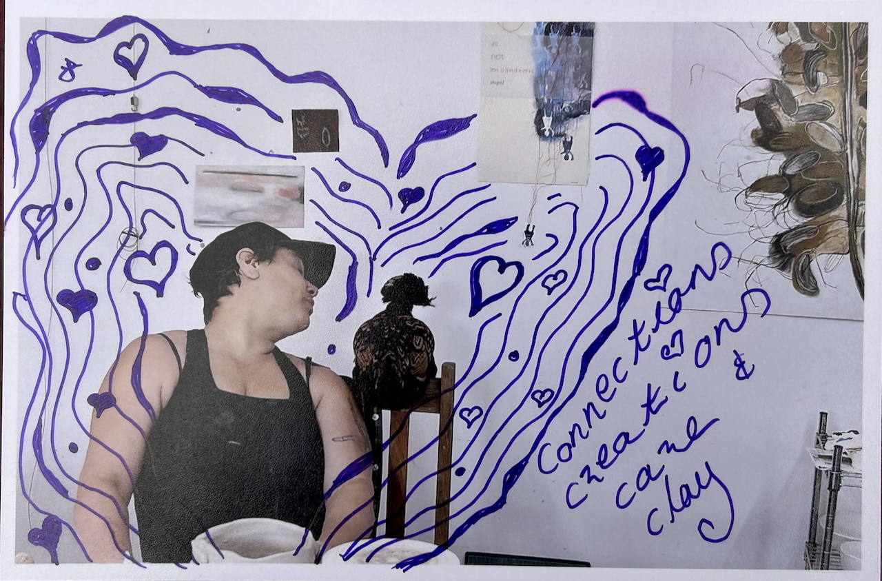 1. Make a postcard with a short message, include an image – maybe your art work, you in the process of creative practice, working with a client or family member etc. Your own text, a short story of why you create. You can print a pro-forma postcard from this PDF doc.