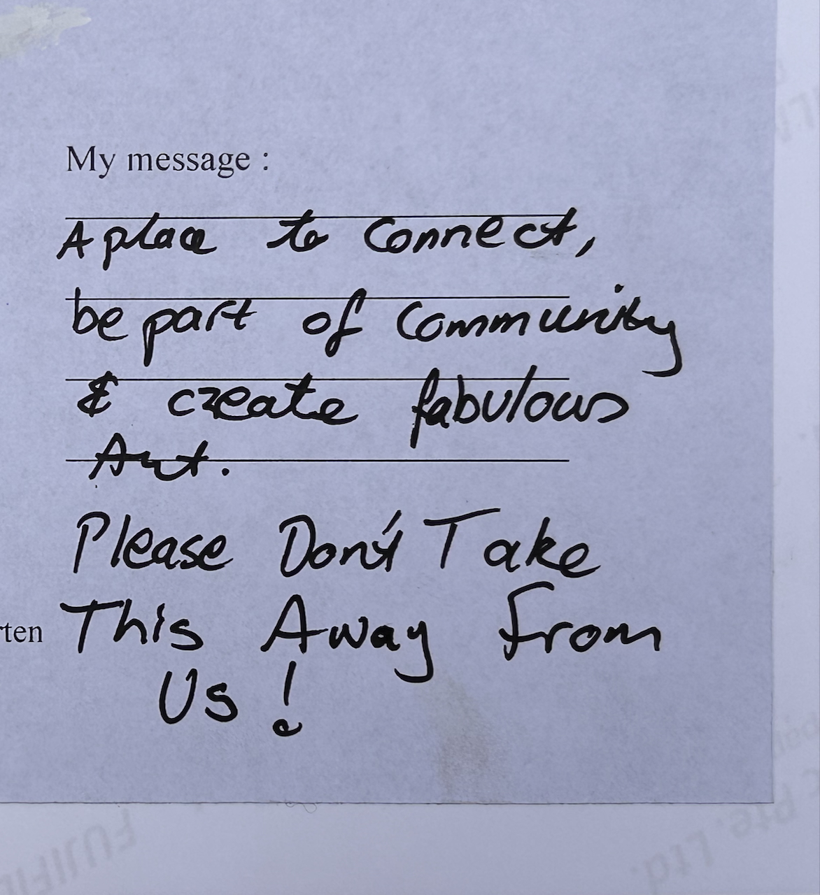 The arts, creative practice and access to the arts is always under threat of funding cuts. This is a seemingly quick fix to complex issues. It is an extremely blunt instrument, whacking the wrong people – professionals+participants, causing untold anxiety and distress as well as uncertainty.